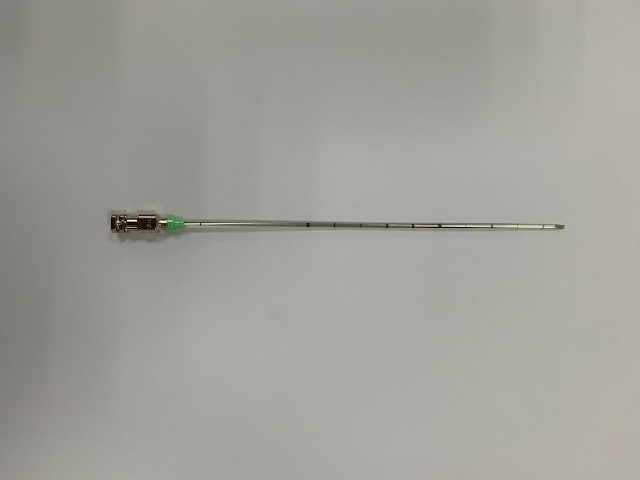 進(jìn)口穿刺針規(guī)格:16G   國產(chǎn)規(guī)格:1.2mm  椎間孔鏡手術(shù)使用,內(nèi)徑1.0,可穿進(jìn)去1.0的導(dǎo)絲