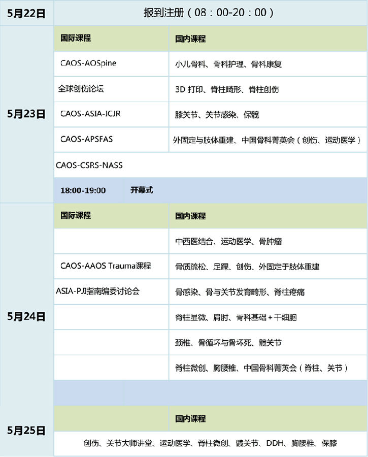 本屆年會將聯(lián)合AAOS(美國骨科醫(yī)師協(xié)會)、AOSPINE (國際脊柱學(xué)會)、ASIA(亞洲人工關(guān)節(jié)學(xué)會)、NASS(北美脊柱協(xié)會)、HSS(紐約特種外科醫(yī)院)、IOTA(國際骨科創(chuàng)傷學(xué)會)、ICJR(國際關(guān)節(jié)重建協(xié)會)等知名學(xué)術(shù)組織開展國際高端繼續(xù)教育課程。同時圍繞“關(guān)節(jié)、脊柱、創(chuàng)傷、運動醫(yī)學(xué)、足踝、骨腫瘤、骨科基礎(chǔ)、小兒骨科、外固定與四肢矯形、骨科3D 打印、骨質(zhì)疏松、骨循環(huán)與骨壞死、中西醫(yī)結(jié)合”等十余個專業(yè)開展不同形式的學(xué)術(shù)交流,更設(shè)有中國骨科菁英會專場、骨科護理會場,讓骨科繼續(xù)教育惠及每一位醫(yī)師、護士,提升專業(yè)技能水平。